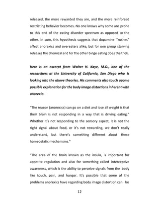 Children and adolescents with anorexia do not reach the same peak bone density as those without the disease and thus have a lifelong increased risk of bone fracture. Body dissatisfaction may lead to dieting and disordered eating which can be gateway behaviors to an eating disorder. Ones perception of his or her body composition.